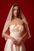 MY STORY Exquisite 1960s elbow length mantilla veil. The mantilla is trimmed in scalloped alencon and decorative lace is woven from the center out. There are two small combs attached to the interior but we would also recommend using bobby pins to hold the mantilla in place.