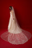 MY STORY Unique reworked veil with antique embroidery. We believe the embroidered portion of this veil dates to the 1920s or earlier, likely silk, and was later reworked in the 1980s (or slightly before) to add the flowing tulle and scalloped hem. The veil is rounded and softly scallops around the face, attaching with a secure metal comb. An extraordinary piece that bridges eras of craftsmanship and design.