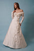 MY STORY Absolutely gorgeous 1980s raw silk gown with delicate silk flowers cascading down the front - it is so romantic. It features an off the shoulder neckline, princess seams, full length sleeves with buttoned cuffs, back zipper and button closures and a full princess skirt with 5 layers including an inbuilt crinoline! The A-line silhouette is exquisite and gives such an hourglass shape.