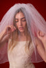 MY STORY Sparkling 1990s pearl and rhinestone veil. This two-layer tulle veil features a white cotton thread trim and is embellished with tiny pearls and crystal rhinestones for a touch of sparkle. A blusher layer adds romance, while the veil secures with a plastic comb for easy wear.